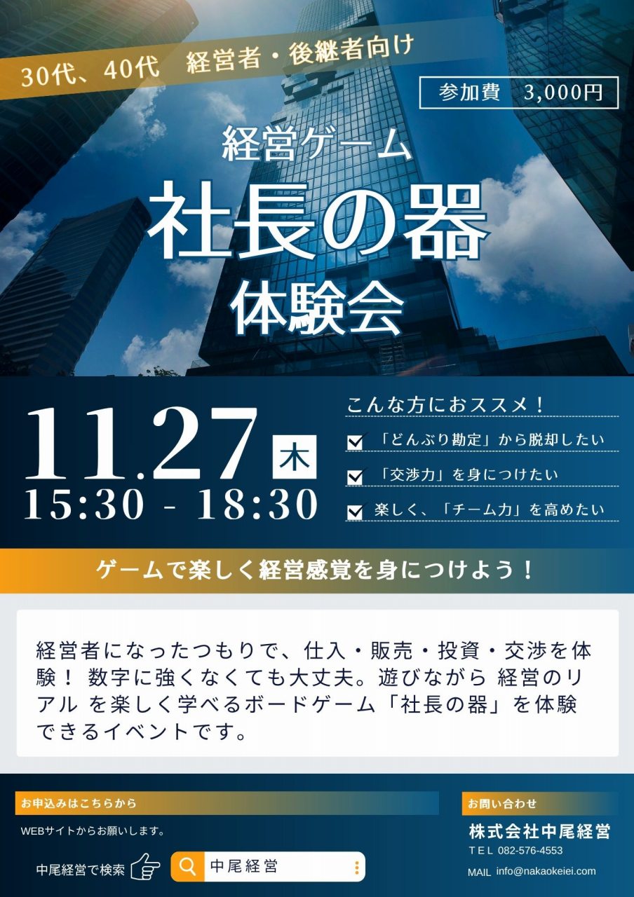 数字に強くなくても大丈夫。遊びながら 経営のリアル を楽しく学べるボードゲーム「社長の器」を体験できるイベントです。